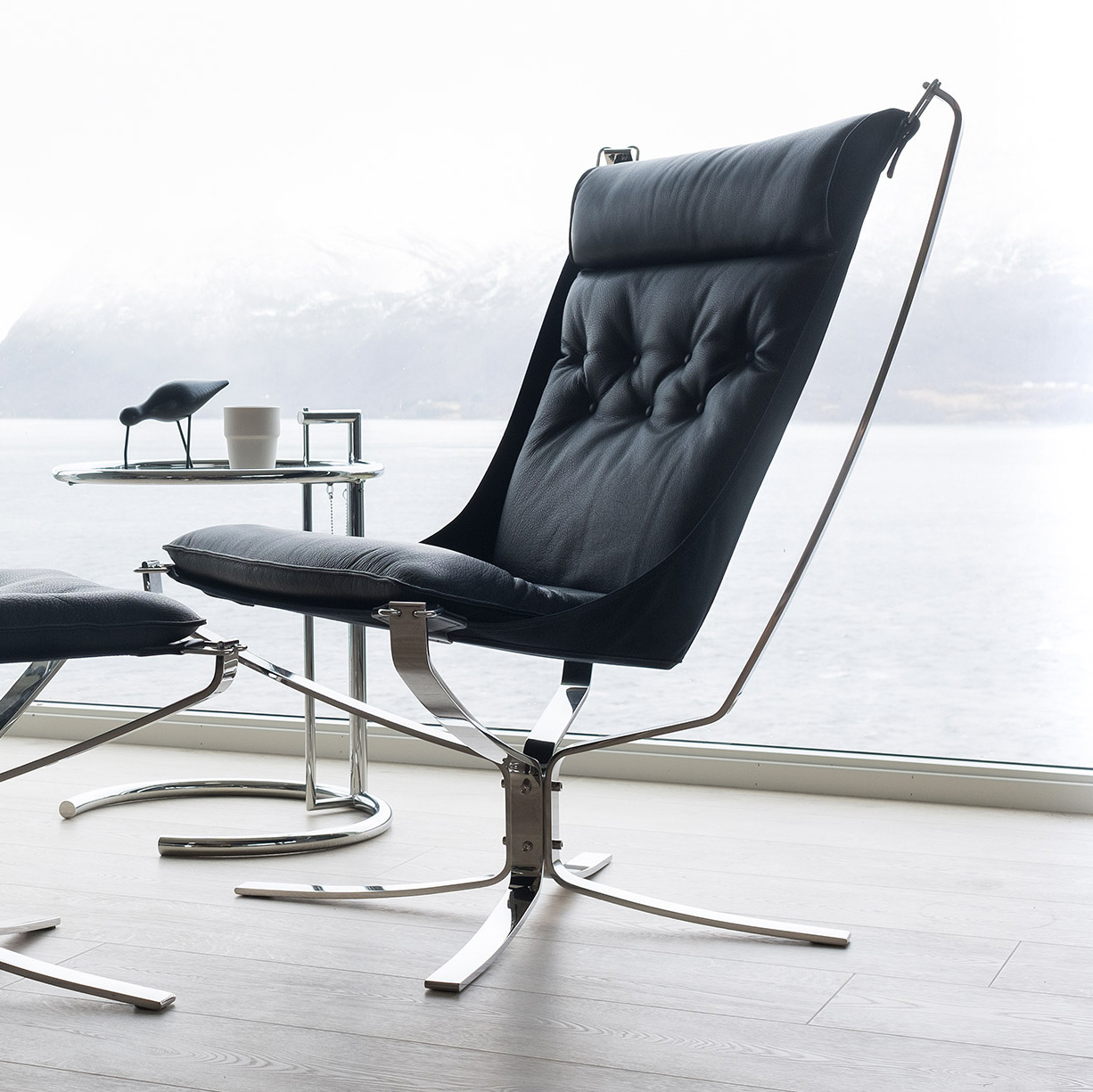 The story started in 1971 when Sigurd Resell designed the chair, drawing great inspiration from the hammock. The chair’s hanging construction provides a nice movement and a unique seating comfort. Falcon First is the classic and original Falcon chair, recognized by its buttons.