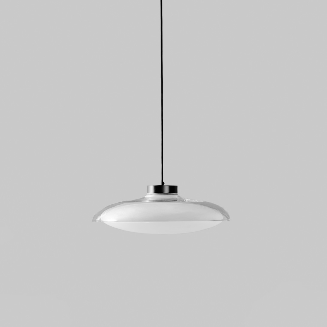 Glass suspension. Available in smoked glass, glass below sanded, diam. 28 cm.