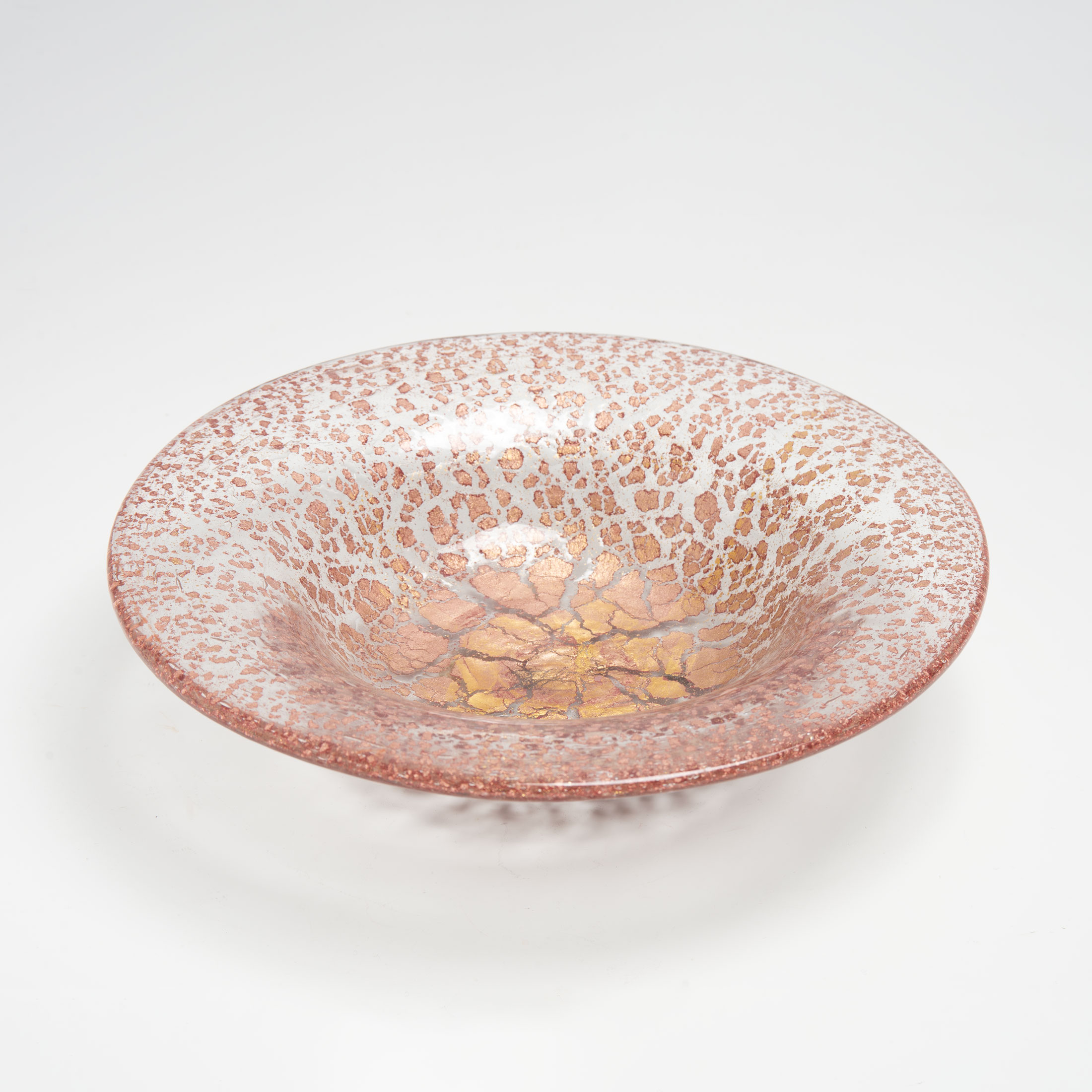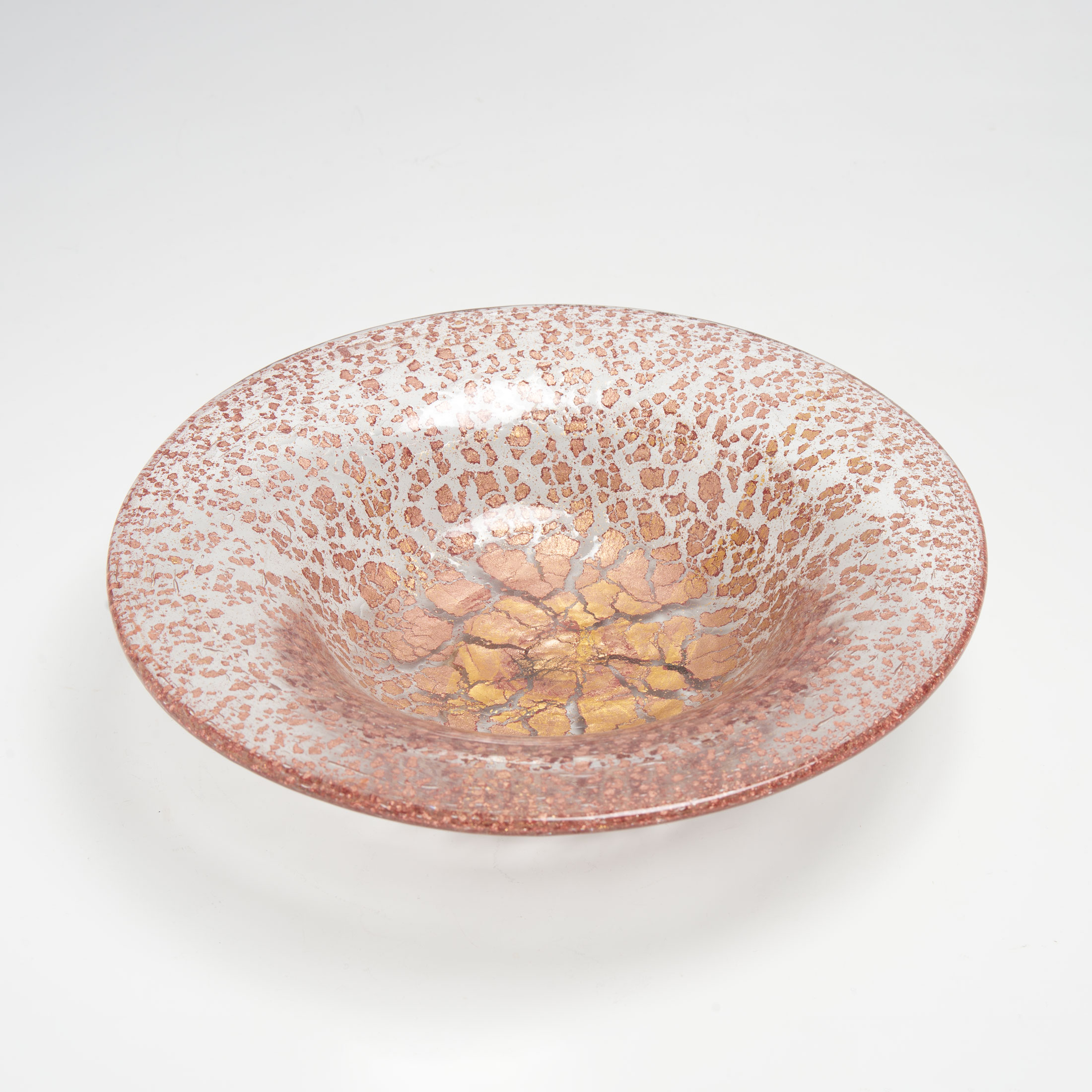 Munnblåst glassbolle dekorert med porpora (lilla) farge og gullblad. Original vintage. Veldig god stand.
